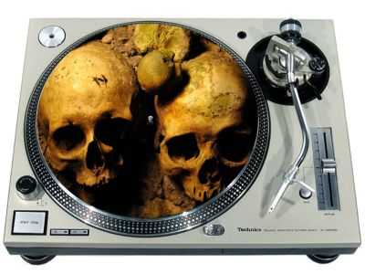 High quality felt turntable slipmat imprinted with an image of Ancient Skulls. The mat is regular thickness (3/32" or 2mm) and is sized to fit any 12 inch turntable. It is anti static, has a glazed bottom to grip and avoid slippage, feels great and works well for scratching or just playing your records. The image is impregnated into the surface of the mat, so it cannot scratch off or damage the record.