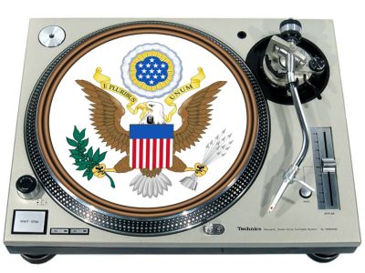 High quality felt turntable slipmat imprinted with an image of Flag USA Seal.png. The mat is regular thickness (3/32" or 2mm) and is sized to fit any 12 inch turntable. It is anti static, has a glazed bottom to grip and avoid slippage, feels great and works well for scratching or just playing your records. The image is impregnated into the surface of the mat, so it cannot scratch off or damage the record.