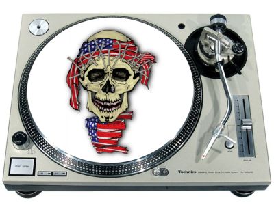 High quality felt turntable slipmat imprinted with an image of Flag USA Skull. The mat is regular thickness (3/32" or 2mm) and is sized to fit any 12 inch turntable. It is anti static, has a glazed bottom to grip and avoid slippage, feels great and works well for scratching or just playing your records. The image is impregnated into the surface of the mat, so it cannot scratch off or damage the record.