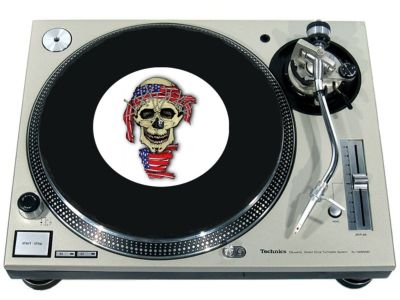 High quality felt turntable slipmat imprinted with an image of Flag USA Skull. The mat is regular thickness (3/32" or 2mm) and is sized to fit any 7 inch turntable. It is anti static, has a glazed bottom to grip and avoid slippage, feels great and works well for scratching or just playing your records. The image is impregnated into the surface of the mat, so it cannot scratch off or damage the record.