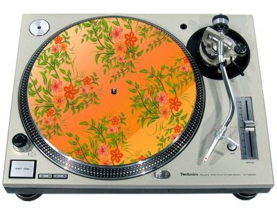 High quality felt turntable slipmat imprinted with an image of Flower Power 4. The mat is regular thickness (3/32" or 2mm) and is sized to fit any 12 inch turntable. It is anti static, has a glazed bottom to grip and avoid slippage, feels great and works well for scratching or just playing your records. The image is impregnated into the surface of the mat, so it cannot scratch off or damage the record.