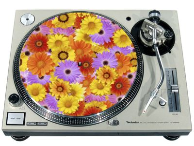 High quality felt turntable slipmat imprinted with an image of Flower Power. The mat is regular thickness (3/32" or 2mm) and is sized to fit any 12 inch turntable. It is anti static, has a glazed bottom to grip and avoid slippage, feels great and works well for scratching or just playing your records. The image is impregnated into the surface of the mat, so it cannot scratch off or damage the record.