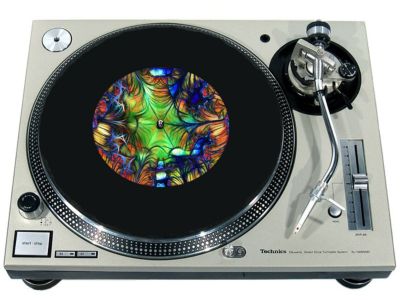 High quality felt turntable slipmat imprinted with an image of Fractal 4. The mat is regular thickness (3/32" or 2mm) and is sized to fit any 7 inch turntable. It is anti static, has a glazed bottom to grip and avoid slippage, feels great and works well for scratching or just playing your records. The image is impregnated into the surface of the mat, so it cannot scratch off or damage the record.