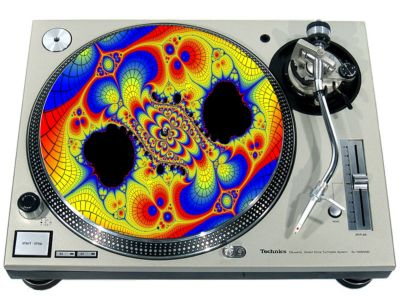 High quality felt turntable slipmat imprinted with an image of Fractal 9. The mat is regular thickness (3/32" or 2mm) and is sized to fit any 12 inch turntable. It is anti static, has a glazed bottom to grip and avoid slippage, feels great and works well for scratching or just playing your records. The image is impregnated into the surface of the mat, so it cannot scratch off or damage the record.