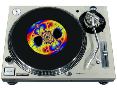 High quality felt turntable slipmat imprinted with an image of Fractal 9. The mat is regular thickness (3/32" or 2mm) and is sized to fit any 7 inch turntable. It is anti static, has a glazed bottom to grip and avoid slippage, feels great and works well for scratching or just playing your records. The image is impregnated into the surface of the mat, so it cannot scratch off or damage the record.