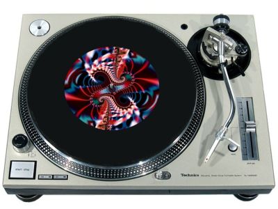High quality felt turntable slipmat imprinted with an image of Fractal 7. The mat is regular thickness (3/32" or 2mm) and is sized to fit any 7 inch turntable. It is anti static, has a glazed bottom to grip and avoid slippage, feels great and works well for scratching or just playing your records. The image is impregnated into the surface of the mat, so it cannot scratch off or damage the record.