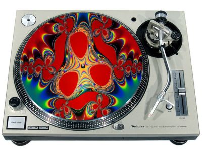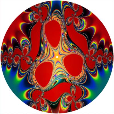High quality felt turntable slipmat imprinted with an image of Fractal 17. The mat is regular thickness (3/32" or 2mm) and is sized to fit any 12 inch turntable. It is anti static, has a glazed bottom to grip and avoid slippage, feels great and works well for scratching or just playing your records. The image is impregnated into the surface of the mat, so it cannot scratch off or damage the record.