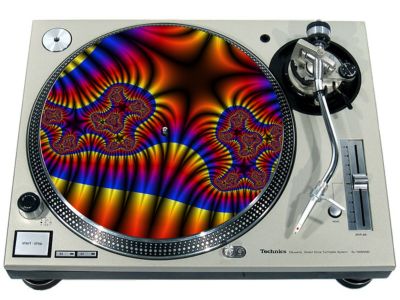 High quality felt turntable slipmat imprinted with an image of Fractal 26. The mat is regular thickness (3/32" or 2mm) and is sized to fit any 12 inch turntable. It is anti static, has a glazed bottom to grip and avoid slippage, feels great and works well for scratching or just playing your records. The image is impregnated into the surface of the mat, so it cannot scratch off or damage the record.