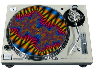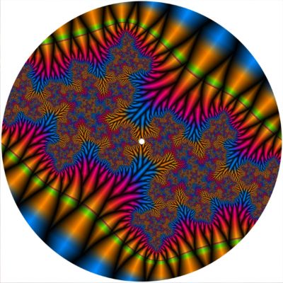 High quality felt turntable slipmat imprinted with an image of Fractal 27. The mat is regular thickness (3/32" or 2mm) and is sized to fit any 12 inch turntable. It is anti static, has a glazed bottom to grip and avoid slippage, feels great and works well for scratching or just playing your records. The image is impregnated into the surface of the mat, so it cannot scratch off or damage the record.