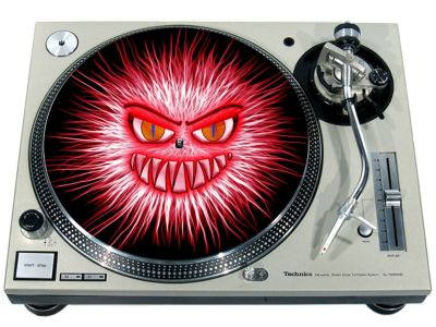 High quality felt turntable slipmat imprinted with an image of Fuzzy Monster 1. The mat is regular thickness (3/32" or 2mm) and is sized to fit any 12 inch turntable. It is anti static, has a glazed bottom to grip and avoid slippage, feels great and works well for scratching or just playing your records. The image is impregnated into the surface of the mat, so it cannot scratch off or damage the record.
