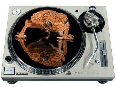 High quality felt turntable slipmat imprinted with an image of Gecko 1. The mat is regular thickness (3/32" or 2mm) and is sized to fit any 12 inch turntable. It is anti static, has a glazed bottom to grip and avoid slippage, feels great and works well for scratching or just playing your records. The image is impregnated into the surface of the mat, so it cannot scratch off or damage the record.