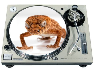 High quality felt turntable slipmat imprinted with an image of Gecko 2. The mat is regular thickness (3/32" or 2mm) and is sized to fit any 12 inch turntable. It is anti static, has a glazed bottom to grip and avoid slippage, feels great and works well for scratching or just playing your records. The image is impregnated into the surface of the mat, so it cannot scratch off or damage the record.