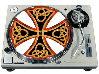 High quality felt turntable slipmat imprinted with an image of Gothic Cross BK. The mat is regular thickness (3/32" or 2mm) and is sized to fit any 12 inch turntable. It is anti static, has a glazed bottom to grip and avoid slippage, feels great and works well for scratching or just playing your records. The image is impregnated into the surface of the mat, so it cannot scratch off or damage the record.