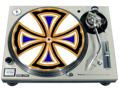 High quality felt turntable slipmat imprinted with an image of Gothic Cross WH. The mat is regular thickness (3/32" or 2mm) and is sized to fit any 12 inch turntable. It is anti static, has a glazed bottom to grip and avoid slippage, feels great and works well for scratching or just playing your records. The image is impregnated into the surface of the mat, so it cannot scratch off or damage the record.