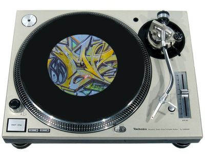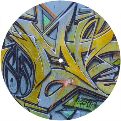 High quality felt turntable slipmat imprinted with an image of Graffiti 4. The mat is regular thickness (3/32" or 2mm) and is sized to fit any 7 inch turntable. It is anti static, has a glazed bottom to grip and avoid slippage, feels great and works well for scratching or just playing your records. The image is impregnated into the surface of the mat, so it cannot scratch off or damage the record.