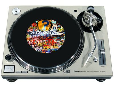 High quality felt turntable slipmat imprinted with an image of Graffiti 15. The mat is regular thickness (3/32" or 2mm) and is sized to fit any 7 inch turntable. It is anti static, has a glazed bottom to grip and avoid slippage, feels great and works well for scratching or just playing your records. The image is impregnated into the surface of the mat, so it cannot scratch off or damage the record.
