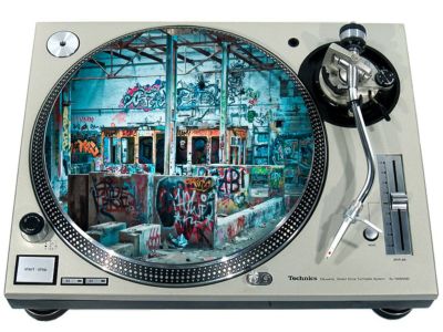 High quality felt turntable slipmat imprinted with an image of Graffiti Abandoned. The mat is regular thickness (3/32" or 2mm) and is sized to fit any 12 inch turntable. It is anti static, has a glazed bottom to grip and avoid slippage, feels great and works well for scratching or just playing your records. The image is impregnated into the surface of the mat, so it cannot scratch off or damage the record.