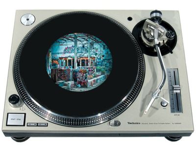 High quality felt turntable slipmat imprinted with an image of Graffiti Abandoned. The mat is regular thickness (3/32" or 2mm) and is sized to fit any 7 inch turntable. It is anti static, has a glazed bottom to grip and avoid slippage, feels great and works well for scratching or just playing your records. The image is impregnated into the surface of the mat, so it cannot scratch off or damage the record.
