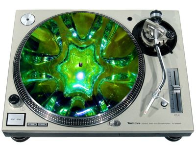 High quality felt turntable slipmat imprinted with an image of Green Glass. The mat is regular thickness (3/32" or 2mm) and is sized to fit any 12 inch turntable. It is anti static, has a glazed bottom to grip and avoid slippage, feels great and works well for scratching or just playing your records. The image is impregnated into the surface of the mat, so it cannot scratch off or damage the record.