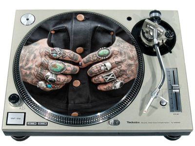 High quality felt turntable slipmat imprinted with an image of Hands 1. The mat is regular thickness (3/32" or 2mm) and is sized to fit any 12 inch turntable. It is anti static, has a glazed bottom to grip and avoid slippage, feels great and works well for scratching or just playing your records. The image is impregnated into the surface of the mat, so it cannot scratch off or damage the record.