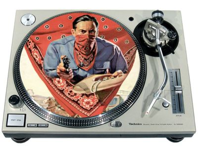High quality felt turntable slipmat imprinted with an image of Highway Robbery. The mat is regular thickness (3/32" or 2mm) and is sized to fit any 12 inch turntable. It is anti static, has a glazed bottom to grip and avoid slippage, feels great and works well for scratching or just playing your records. The image is impregnated into the surface of the mat, so it cannot scratch off or damage the record.