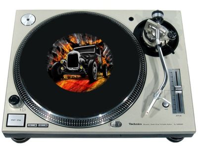 High quality felt turntable slipmat imprinted with an image of Hot Rod Car 1. The mat is regular thickness (3/32" or 2mm) and is sized to fit any 7 inch turntable. It is anti static, has a glazed bottom to grip and avoid slippage, feels great and works well for scratching or just playing your records. The image is impregnated into the surface of the mat, so it cannot scratch off or damage the record.