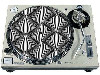 High quality felt turntable slipmat imprinted with an image of Hypnoblocks. The mat is regular thickness (3/32" or 2mm) and is sized to fit any 12 inch turntable. It is anti static, has a glazed bottom to grip and avoid slippage, feels great and works well for scratching or just playing your records. The image is impregnated into the surface of the mat, so it cannot scratch off or damage the record.