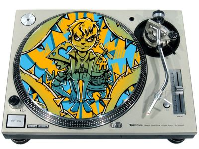 High quality felt turntable slipmat imprinted with an image of Illustration 1. The mat is regular thickness (3/32" or 2mm) and is sized to fit any 12 inch turntable. It is anti static, has a glazed bottom to grip and avoid slippage, feels great and works well for scratching or just playing your records. The image is impregnated into the surface of the mat, so it cannot scratch off or damage the record.
