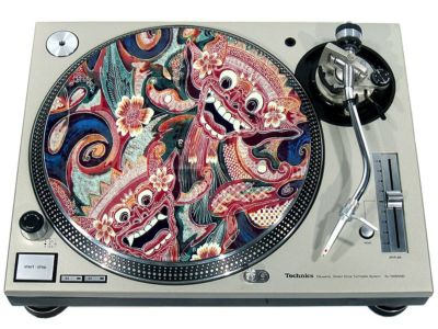 High quality felt turntable slipmat imprinted with an image of Indonesia Art 1. The mat is regular thickness (3/32" or 2mm) and is sized to fit any 12 inch turntable. It is anti static, has a glazed bottom to grip and avoid slippage, feels great and works well for scratching or just playing your records. The image is impregnated into the surface of the mat, so it cannot scratch off or damage the record.