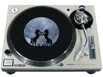 High quality felt turntable slipmat imprinted with an image of Iron Horses. The mat is regular thickness (3/32" or 2mm) and is sized to fit any 7 inch turntable. It is anti static, has a glazed bottom to grip and avoid slippage, feels great and works well for scratching or just playing your records. The image is impregnated into the surface of the mat, so it cannot scratch off or damage the record.
