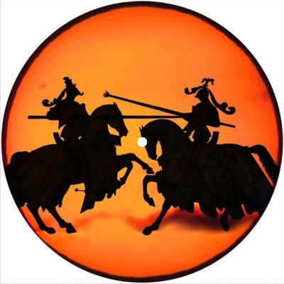 High quality felt turntable slipmat imprinted with an image of Joust 1. The mat is regular thickness (3/32" or 2mm) and is sized to fit any 7 inch turntable. It is anti static, has a glazed bottom to grip and avoid slippage, feels great and works well for scratching or just playing your records. The image is impregnated into the surface of the mat, so it cannot scratch off or damage the record.