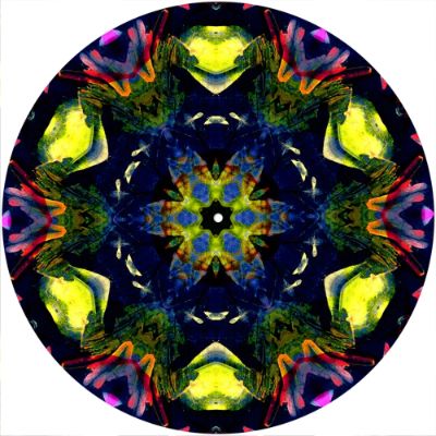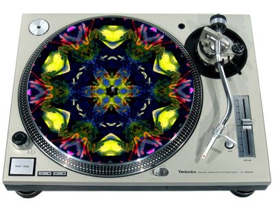 High quality felt turntable slipmat imprinted with an image of Kaleidoscope 2. The mat is regular thickness (3/32" or 2mm) and is sized to fit any 12 inch turntable. It is anti static, has a glazed bottom to grip and avoid slippage, feels great and works well for scratching or just playing your records. The image is impregnated into the surface of the mat, so it cannot scratch off or damage the record.