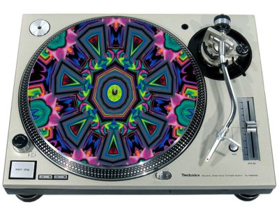 High quality felt turntable slipmat imprinted with an image of Kaleidoscope 4. The mat is regular thickness (3/32" or 2mm) and is sized to fit any 12 inch turntable. It is anti static, has a glazed bottom to grip and avoid slippage, feels great and works well for scratching or just playing your records. The image is impregnated into the surface of the mat, so it cannot scratch off or damage the record.