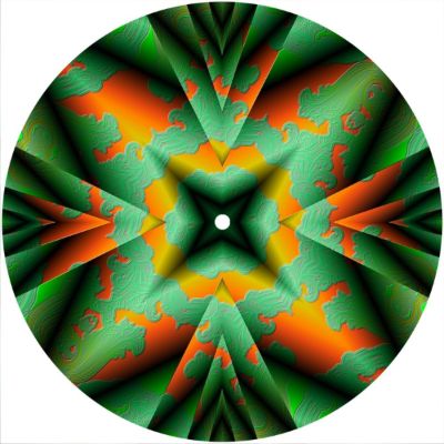 High quality felt turntable slipmat imprinted with an image of Kaleidoscope 7. The mat is regular thickness (3/32" or 2mm) and is sized to fit any 7 inch turntable. It is anti static, has a glazed bottom to grip and avoid slippage, feels great and works well for scratching or just playing your records. The image is impregnated into the surface of the mat, so it cannot scratch off or damage the record.