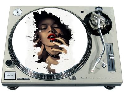 High quality felt turntable slipmat imprinted with an image of Lady Emerge. The mat is regular thickness (3/32" or 2mm) and is sized to fit any 12 inch turntable. It is anti static, has a glazed bottom to grip and avoid slippage, feels great and works well for scratching or just playing your records. The image is impregnated into the surface of the mat, so it cannot scratch off or damage the record.
