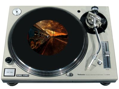 High quality felt turntable slipmat imprinted with an image of Last Train. The mat is regular thickness (3/32" or 2mm) and is sized to fit any 7 inch turntable. It is anti static, has a glazed bottom to grip and avoid slippage, feels great and works well for scratching or just playing your records. The image is impregnated into the surface of the mat, so it cannot scratch off or damage the record.