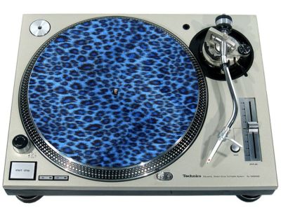 High quality felt turntable slipmat imprinted with an image of Leopard print Blue. The mat is regular thickness (3/32" or 2mm) and is sized to fit any 12 inch turntable. It is anti static, has a glazed bottom to grip and avoid slippage, feels great and works well for scratching or just playing your records. The image is impregnated into the surface of the mat, so it cannot scratch off or damage the record.