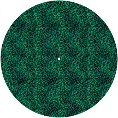 High quality felt turntable slipmat imprinted with an image of Leopard Print Green. The mat is regular thickness (3/32" or 2mm) and is sized to fit any 12 inch turntable. It is anti static, has a glazed bottom to grip and avoid slippage, feels great and works well for scratching or just playing your records. The image is impregnated into the surface of the mat, so it cannot scratch off or damage the record.