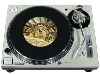 High quality felt turntable slipmat imprinted with an image of Liberty 1. The mat is regular thickness (3/32" or 2mm) and is sized to fit any 7 inch turntable. It is anti static, has a glazed bottom to grip and avoid slippage, feels great and works well for scratching or just playing your records. The image is impregnated into the surface of the mat, so it cannot scratch off or damage the record.