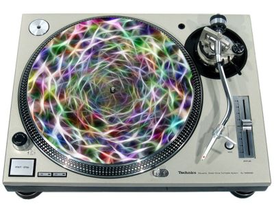 High quality felt turntable slipmat imprinted with an image of Light Flecks 2. The mat is regular thickness (3/32" or 2mm) and is sized to fit any 12 inch turntable. It is anti static, has a glazed bottom to grip and avoid slippage, feels great and works well for scratching or just playing your records. The image is impregnated into the surface of the mat, so it cannot scratch off or damage the record.