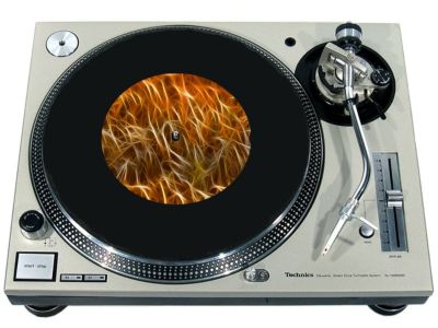 High quality felt turntable slipmat imprinted with an image of Light Flecks 3. The mat is regular thickness (3/32" or 2mm) and is sized to fit any 7 inch turntable. It is anti static, has a glazed bottom to grip and avoid slippage, feels great and works well for scratching or just playing your records. The image is impregnated into the surface of the mat, so it cannot scratch off or damage the record.