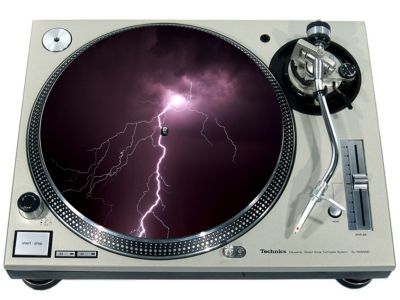 High quality felt turntable slipmat imprinted with an image of Lightening 1. The mat is regular thickness (3/32" or 2mm) and is sized to fit any 12 inch turntable. It is anti static, has a glazed bottom to grip and avoid slippage, feels great and works well for scratching or just playing your records. The image is impregnated into the surface of the mat, so it cannot scratch off or damage the record.