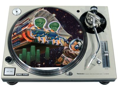 High quality felt turntable slipmat imprinted with an image of Little Green Men. The mat is regular thickness (3/32" or 2mm) and is sized to fit any 12 inch turntable. It is anti static, has a glazed bottom to grip and avoid slippage, feels great and works well for scratching or just playing your records. The image is impregnated into the surface of the mat, so it cannot scratch off or damage the record.