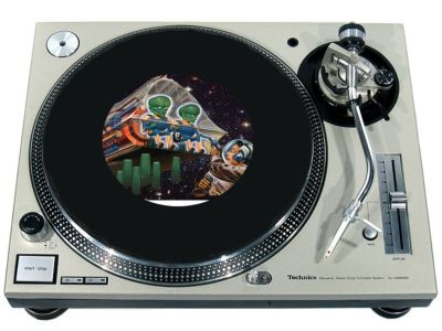 High quality felt turntable slipmat imprinted with an image of Little Green Men. The mat is regular thickness (3/32" or 2mm) and is sized to fit any 7 inch turntable. It is anti static, has a glazed bottom to grip and avoid slippage, feels great and works well for scratching or just playing your records. The image is impregnated into the surface of the mat, so it cannot scratch off or damage the record.