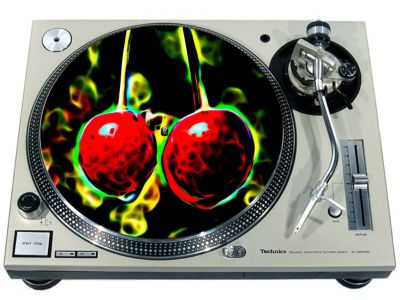 High quality felt turntable slipmat imprinted with an image of Artistic Cherries. The mat is regular thickness (3/32" or 2mm) and is sized to fit any 12 inch turntable. It is anti static, has a glazed bottom to grip and avoid slippage, feels great and works well for scratching or just playing your records. The image is impregnated into the surface of the mat, so it cannot scratch off or damage the record.