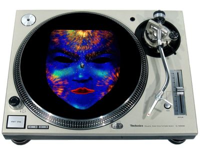 High quality felt turntable slipmat imprinted with an image of Mask 1. The mat is regular thickness (3/32" or 2mm) and is sized to fit any 12 inch turntable. It is anti static, has a glazed bottom to grip and avoid slippage, feels great and works well for scratching or just playing your records. The image is impregnated into the surface of the mat, so it cannot scratch off or damage the record.
