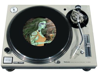 High quality felt turntable slipmat imprinted with an image of Medusa. The mat is regular thickness (3/32" or 2mm) and is sized to fit any 7 inch turntable. It is anti static, has a glazed bottom to grip and avoid slippage, feels great and works well for scratching or just playing your records. The image is impregnated into the surface of the mat, so it cannot scratch off or damage the record.