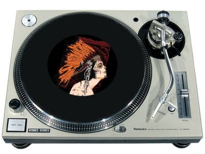 High quality felt turntable slipmat imprinted with an image of Miss Chief. The mat is regular thickness (3/32" or 2mm) and is sized to fit any 7 inch turntable. It is anti static, has a glazed bottom to grip and avoid slippage, feels great and works well for scratching or just playing your records. The image is impregnated into the surface of the mat, so it cannot scratch off or damage the record.