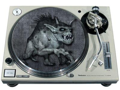 High quality felt turntable slipmat imprinted with an image of Monster Trot. The mat is regular thickness (3/32" or 2mm) and is sized to fit any 12 inch turntable. It is anti static, has a glazed bottom to grip and avoid slippage, feels great and works well for scratching or just playing your records. The image is impregnated into the surface of the mat, so it cannot scratch off or damage the record.