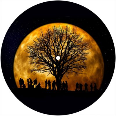 High quality felt turntable slipmat imprinted with an image of Moon Gathering. The mat is regular thickness (3/32" or 2mm) and is sized to fit any 7 inch turntable. It is anti static, has a glazed bottom to grip and avoid slippage, feels great and works well for scratching or just playing your records. The image is impregnated into the surface of the mat, so it cannot scratch off or damage the record.